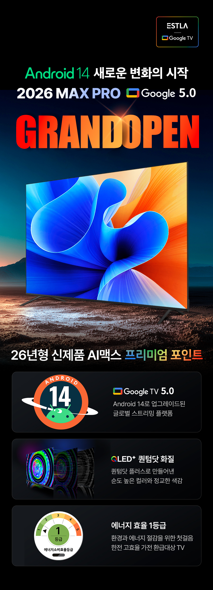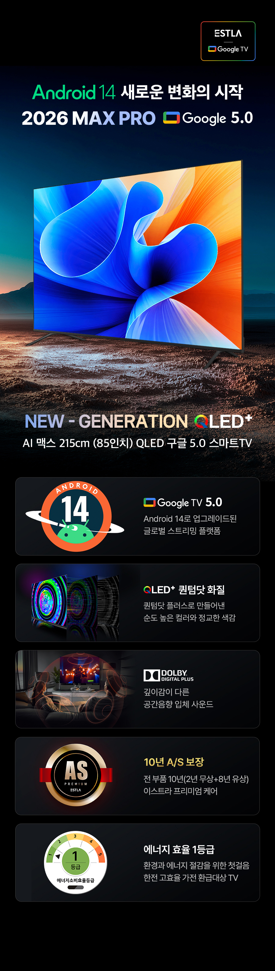 26년형 이스트라 1등급 60Hz AI 맥스 85 QLED 구글 5.0 스마트TV