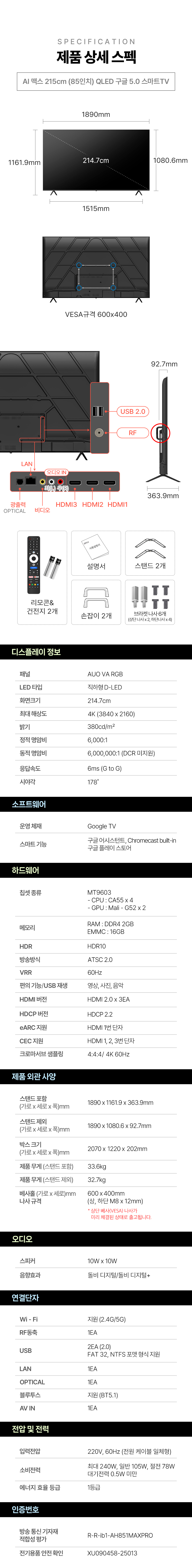 26년형 이스트라 1등급 60Hz AI 맥스 85 QLED 구글 5.0 스마트TVSOLDOUT